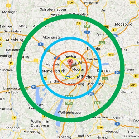 Mein Lieferservice erstreckt sich über München und Umgebung hinaus. Siehe auf der unteren Grafik.